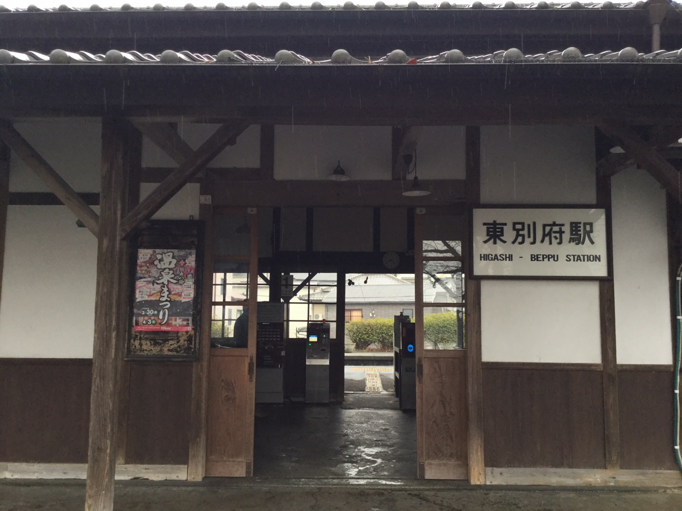 From Beppu Station, bustling with tourists on a busy day, I took a two-minute train ride and got off at Higashi-Beppu Station. The station building itself was a retro looking wooden structure.