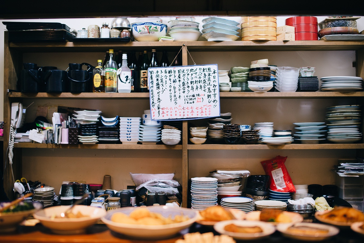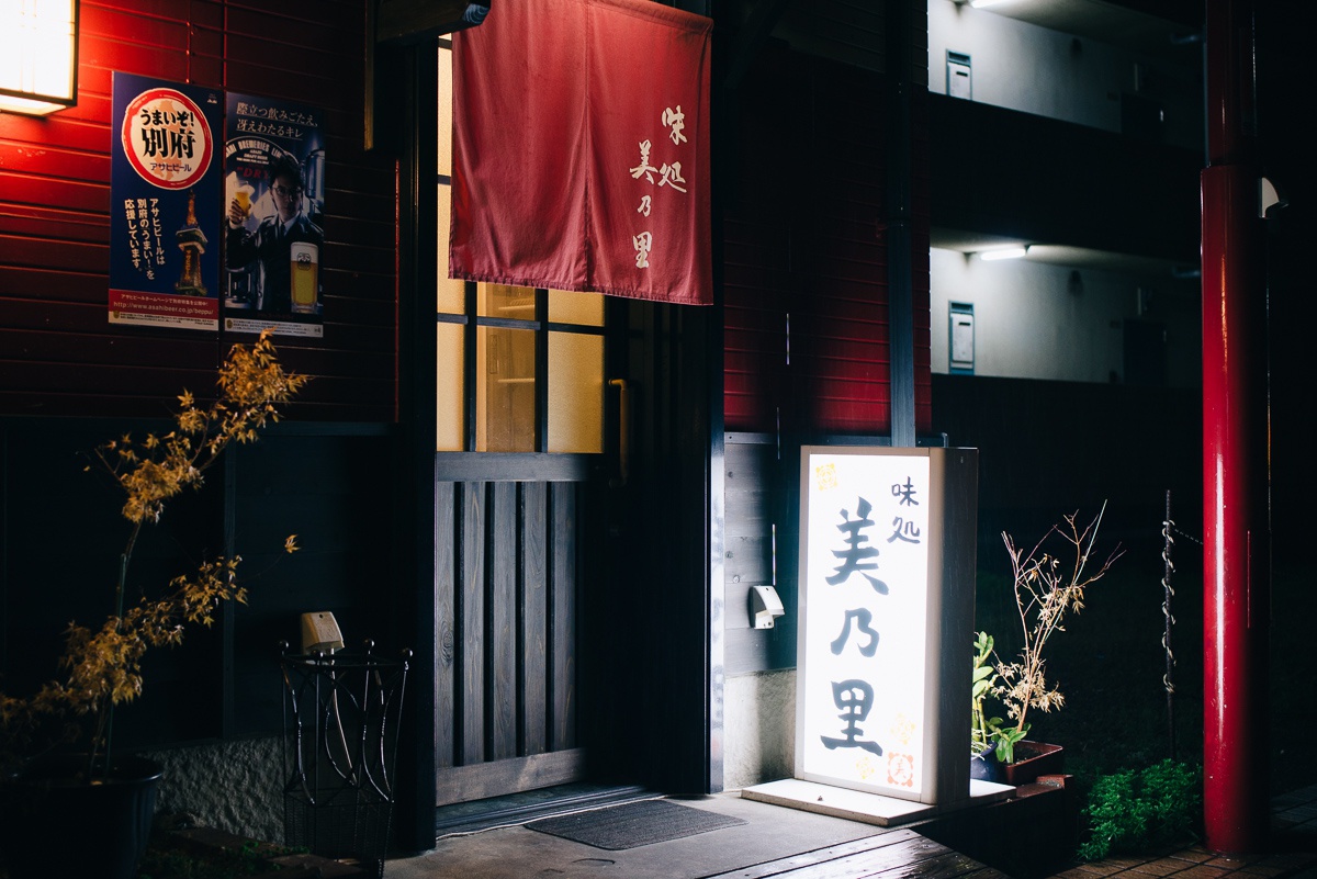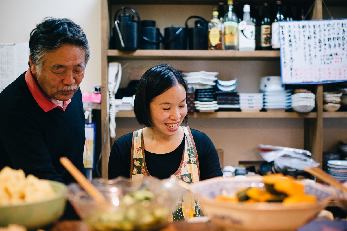 Yuri-san was born in Vietnam, and she came to Beppu as a student. When she was in school she worked a part time job at a small restaurant similar to this one called Ureshiya. Many of the dishes that she learned working there are carried on here, and even the former owners of Ureshiya have become regular customers at Ajidocoro Minori. Yuri-san’s husband was a regular at Ureshiya. “This guy has an extraordinary culinary sense,” said Yuri-san in a low voice, speaking of her husband. Ureshiya was once a very popular and much loved local establishment, but shortly after Yuri-san quit in order to give birth to and care for her child, the restaurant sadly closed. After some time had passed Yuri-san and her husband decided to open this restaurant together. Now Yuri-san’s husband, with his experienced palette, works in the kitchen assisting his wife. Before they opened the restaurant he was an office worker, but now watching him cook is like watching a craftsman at work.