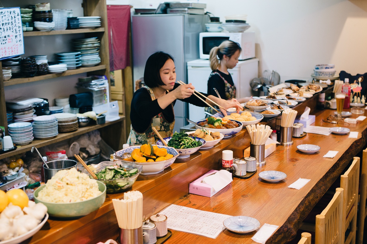Glancing over at the table seating area, I could see that every single person there was relaxed and having a great time drinking and eating with friends. When Yuri-san brings the food over from the kitchen, a cheer of laughter and joy arises from the table. I could see that the customers here feel just as comfortable at this restaurant as they do in their own homes.