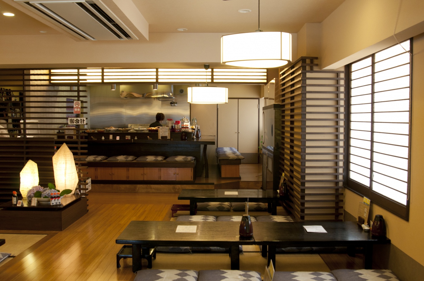 Here you will often see families with young children; many appearing to be tourists. “Whenever we have customers with young children, I seat them right in front of the big fish tank. The kids always enjoy watching the fish,” said the young proprietress of both this restaurant and the hotel next door, Yuhi. “Sometimes we see taxi drivers come in during breaks in their work days. Also many of the guests staying at the hotel come here for breakfast, lunch, and dinner.”