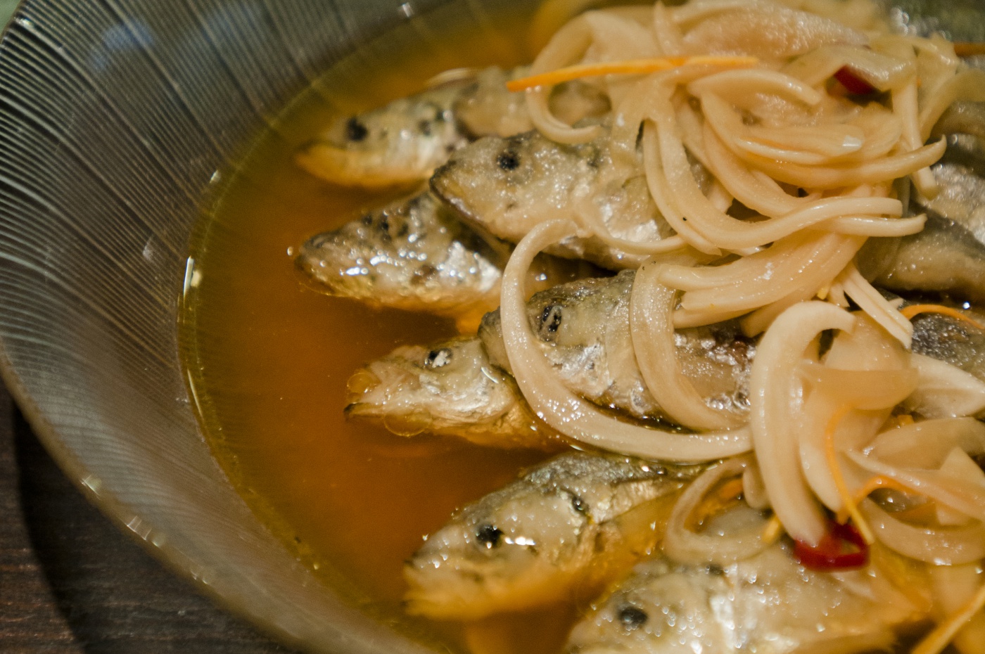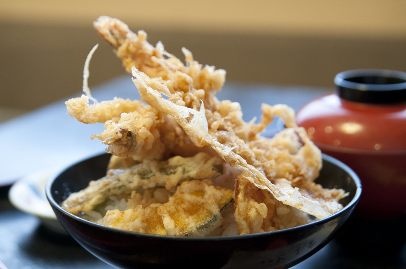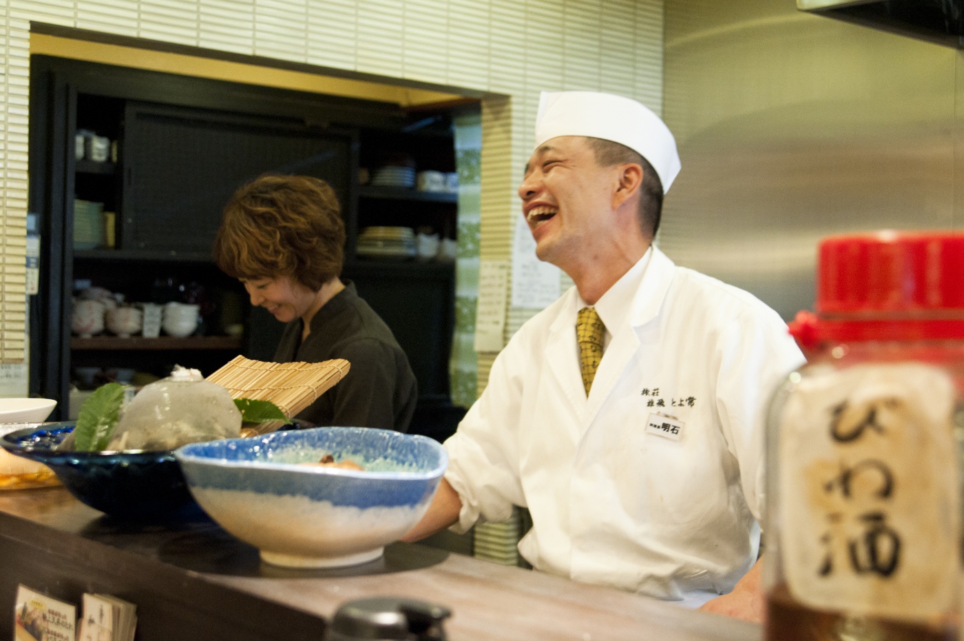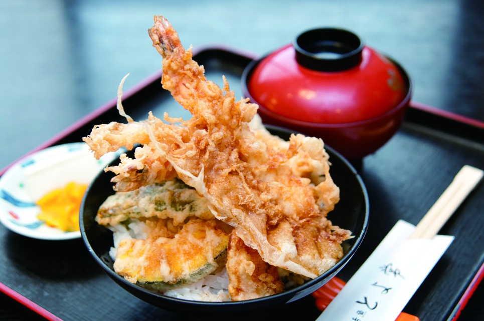 On the counter I saw a spread of a la carte dishes such as roasted horse mackerel. “We get our fish fresh every morning from the Beppu Market,” said the head chef. At the far end of the kitchen I could see an earthenware pot, which I soon learned contained the restaurants secret sauce — a recipe that has gone unchanged since the restaurant was first established. Their deluxe tempura rice bowl is topped with a generous coating of the secret sauce. Large shrimp with crispy tempura batter are piled on high, and even the sweet sauce coating can’t take away from the satisfying crunch of each bite.