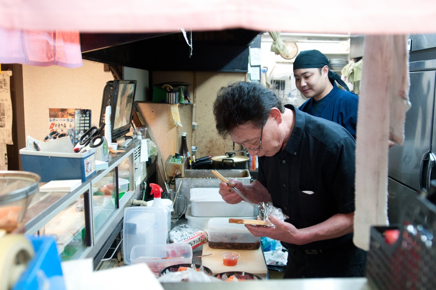 The restaurant is run by a former fishmonger and his son who mans the cutting board. Together they stand behind the counter. “My father knows much more about Beppu’s fish than I do. He selects the fish we serve at auction, and my job is to think about how to prepare them,” said the chef. The two have a relationship that depends greatly on the other.