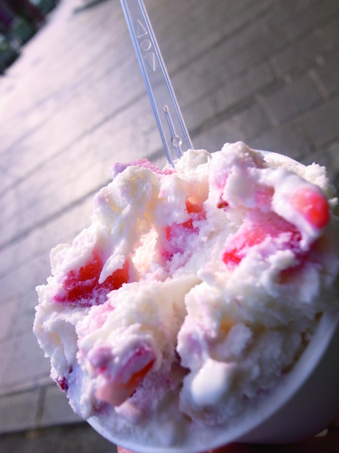 At any one time the shop generally has around 26 flavors. I asked the manager how he decides every day which flavors to put on the menu. He smiled wryly and said “I decide by whatever mood I’m in!” I ordered a strawberry gelato, and the manager made it with an extra generous scoop. I took a bite and a let a frozen strawberry melt on my tongue as the taste of fresh milk covered my palette. I decided to take my gelato with me for a night stroll in Beppu.