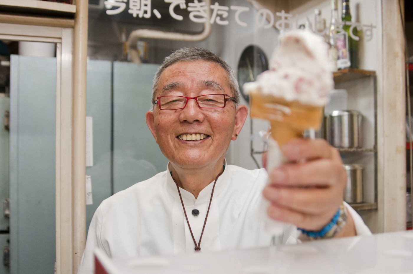 Genova – a gelato shop located at the entrance of Sorupaseo Ginza shoten-gai that stays open until midnight. At night this shop is crowded with students coming back from the bars and office workers headed home after work. The bright and colorful, eye catching flavors of gelato lined up behind the glass display all look delicious.