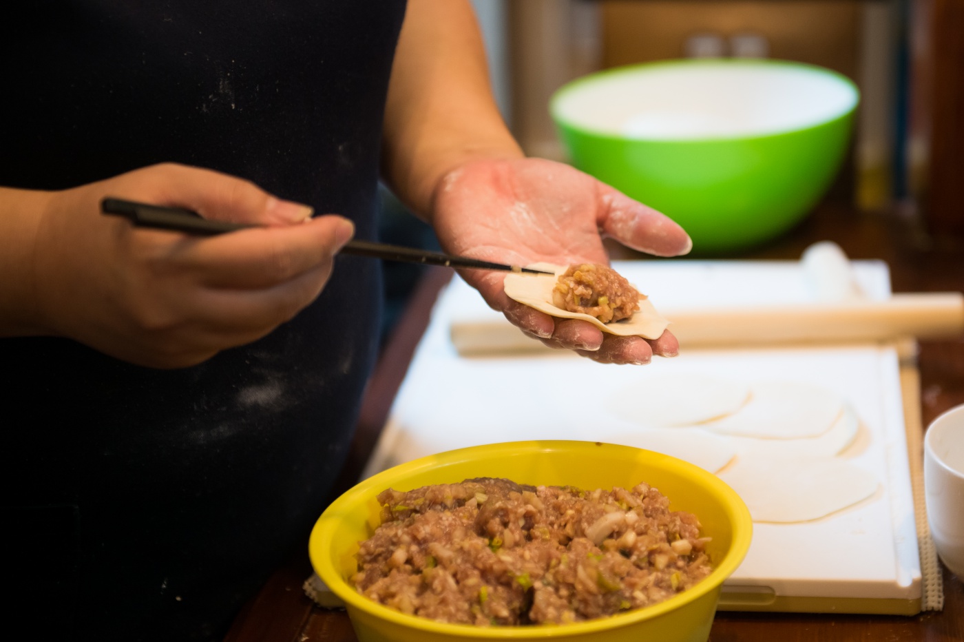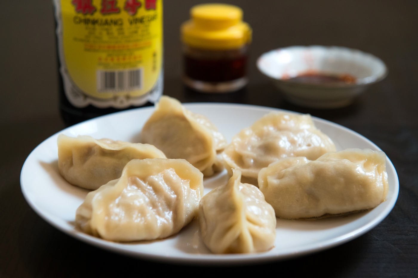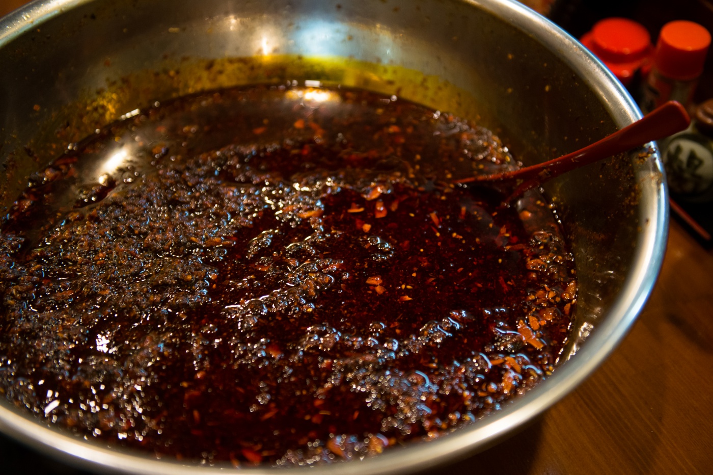 While I waited for the gyoza to finish cooking, Lin showed me a glass bottle containing her homemade chili pepper oil. She uses fresh chili peppers and dries them naturally so that when they combine with the oil, they increase its glossiness and transparency. To get the best smell, color, flavor, and spiciness she uses a blend of four different types of peppers.