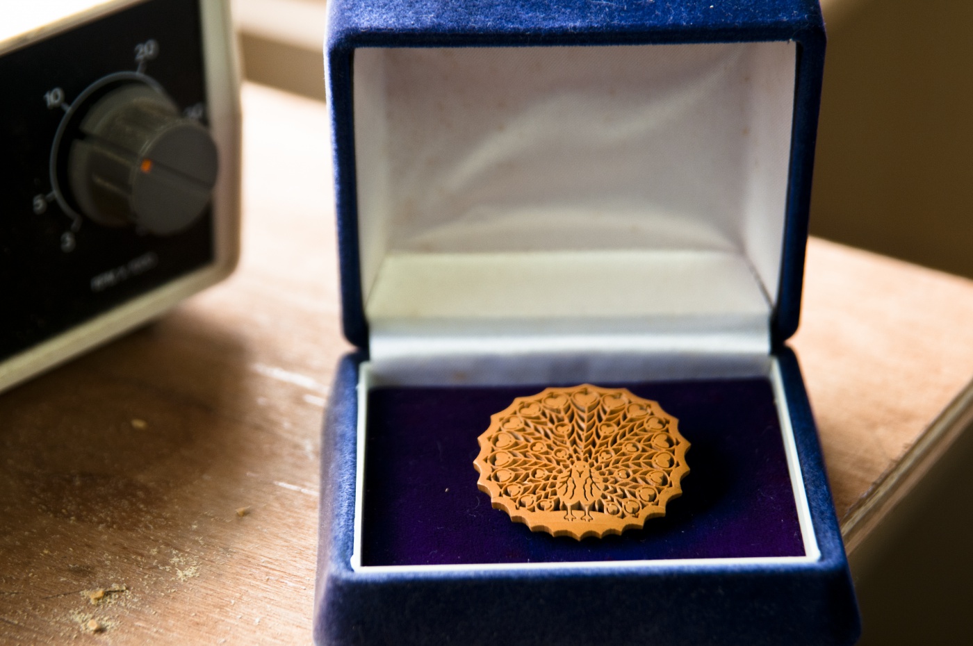 Beppu Tsuge Kogei was founded in 1919 by Ippei Ando. It was a time of economic prosperity, when Ippei’s work would sell out completely in an instant. One day a customer came to the store and asked Ippei to rework the peacock kimono ornament which she had inherited from her mother. He told the woman that because the work was so delicate he wouldn’t be able to do it, so he traded a new boxwood pendant for the kimono ornament that he made.
