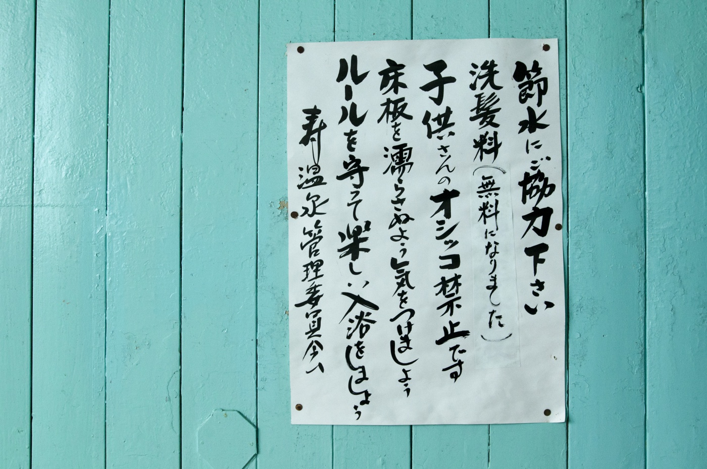 A woman came running down the street. “Sorry to keep you waiting!” said the receptionist, out of breath. I paid the 100 yen bath fee and stepped inside. “Please enjoy,” she said as I entered.
