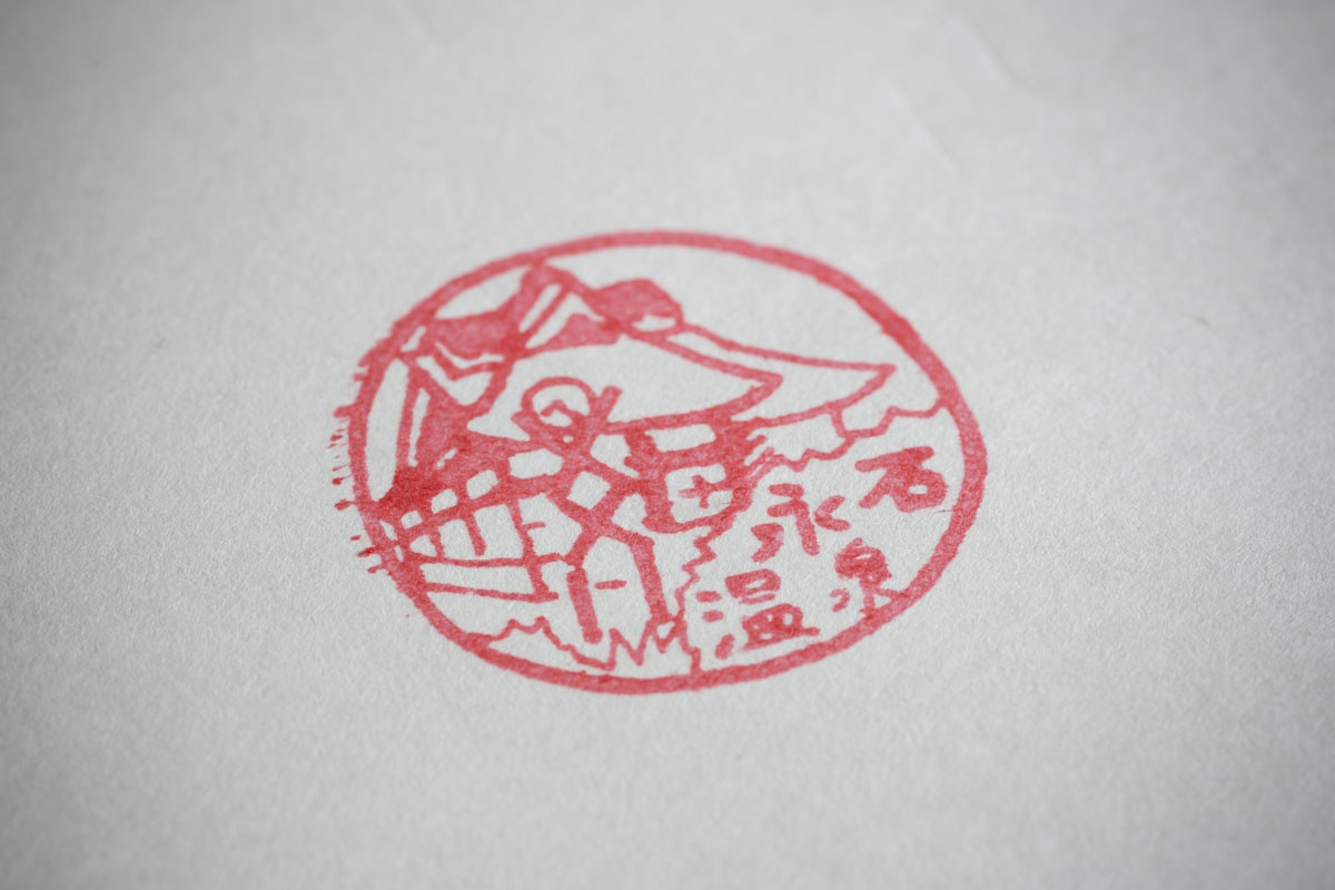 After my bath I got a commemorative stamp, at the insistence of the onsen receptionist. The design of the stamp is the exterior of Nageshi Onsen as viewed from the center of the nearby five-point intersection.