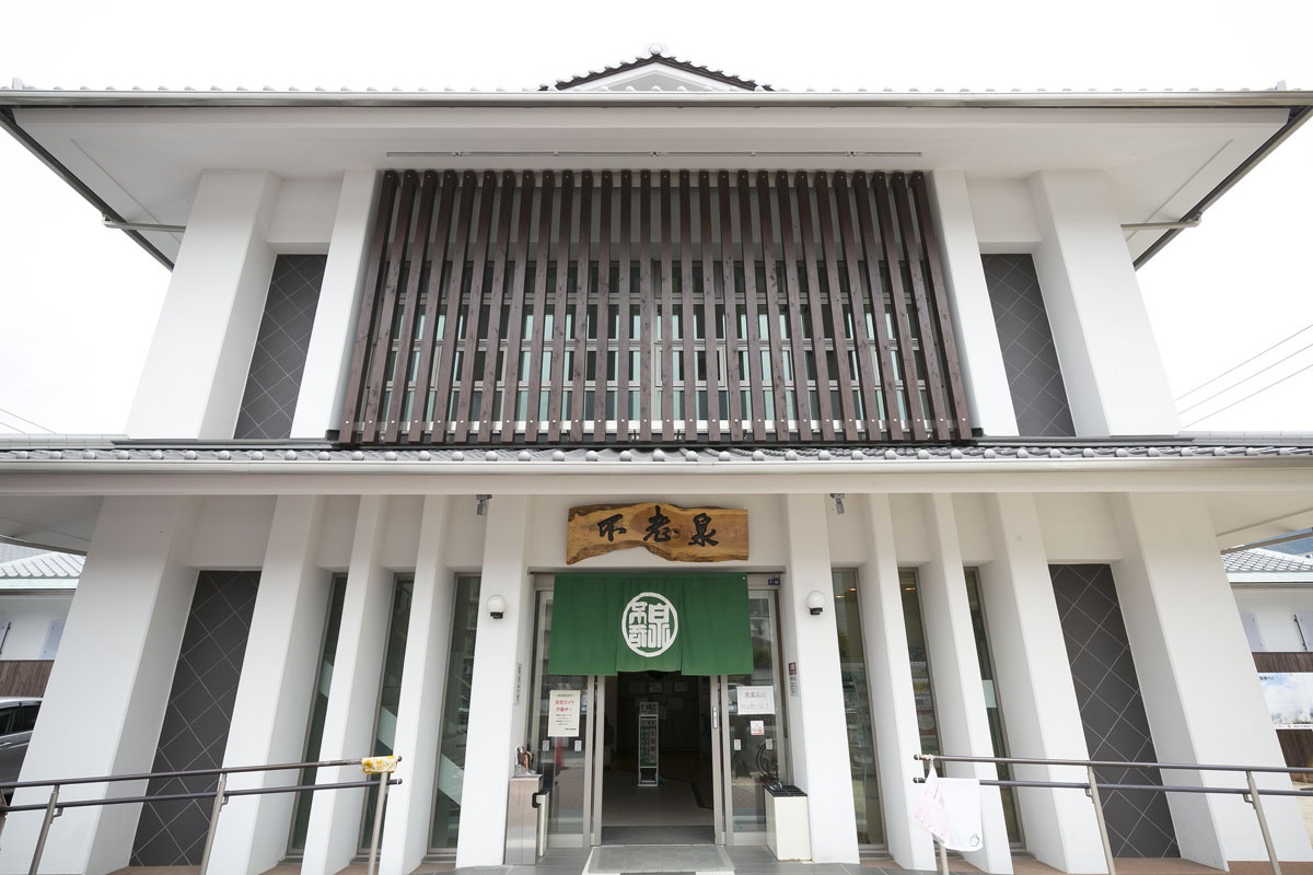 Between the onsen’s plaza and parking lot rests a statue of the Buddhist figure Kṣitigarbha. Neatly arranged in front of the statue are flowers, and it’s clear to see that the local residents of this area take great care of the statue. The statue has a kind face, with a look that suggests he watches over the countless people who come to this onsen seeking warmth.