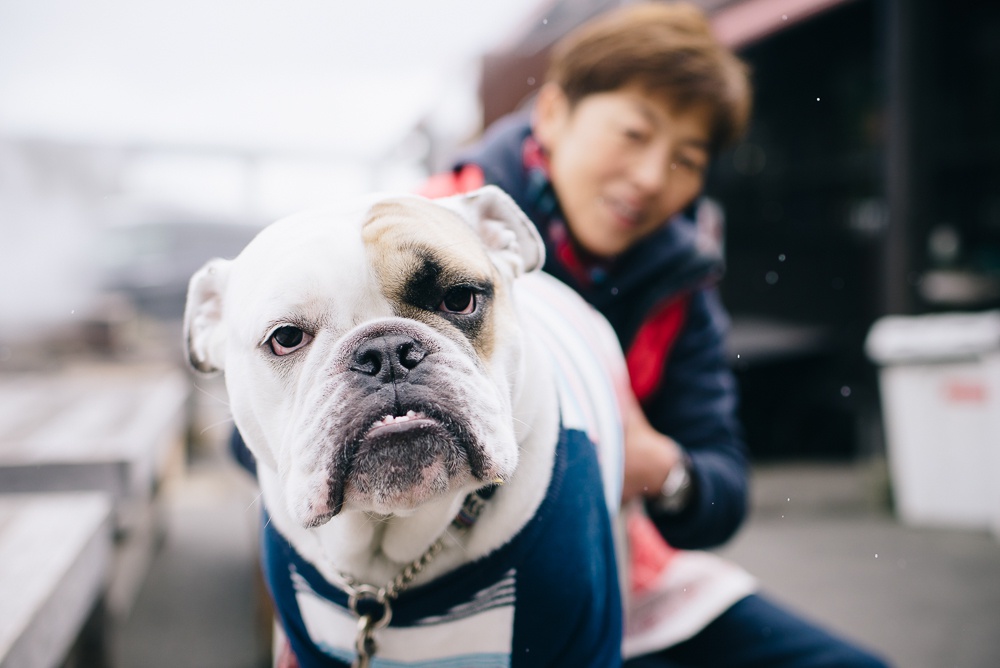 The shop’s dog, Charlie, loves people and other pets, but he dislikes going for walks — unusual for a dog. He also doesn’t like the cold, so he usually stays inside the shop, and if nobody pays attention to him he falls right asleep. I ordered an egg sandwich and sat down on a chair outside to wait. Out came Charlie with his tail wagging happily. Each bite-size piece of the sandwich is quite thick and has a hefty weight, but the texture is light and airy. “Not only the food, but also this place as a whole — I hope people who come here take it all in,” says Iwase-san. His warm smile, the simple and delicious sandwich, and the smell of sulfur completed the scene.