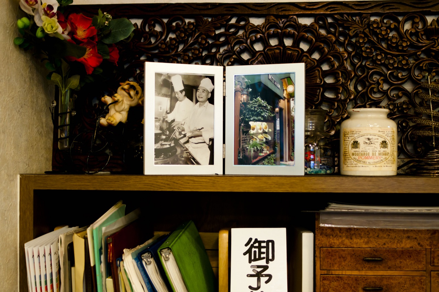 Like his father and his grandfather before him, Yamamoto-san has chosen the life of a chef. After taking time to gain a variety of experiences from the outside world, the taste of Grill Mitsuba lingered in his mind. Now, as the head chef, Yamamoto-san looks to learn from the past and preserve the essential good that is unchanging. When the restaurant first opened, freezers were still not commonly used in restaurants, so ingredients would be stocked fresh and completely used up daily — a style that remains here even today. “It takes more time and work, but I’d never change that. I’m carrying on even the stubbornness of my grandfather,” he said. “I want to eat western food like it was back in the day,” is a common sentiment among the regular customers who come here. Two photographs of the smiling faces of Yamamoto-san’s father and grandfather adorn the entrance of the restaurant, welcoming all who enter.