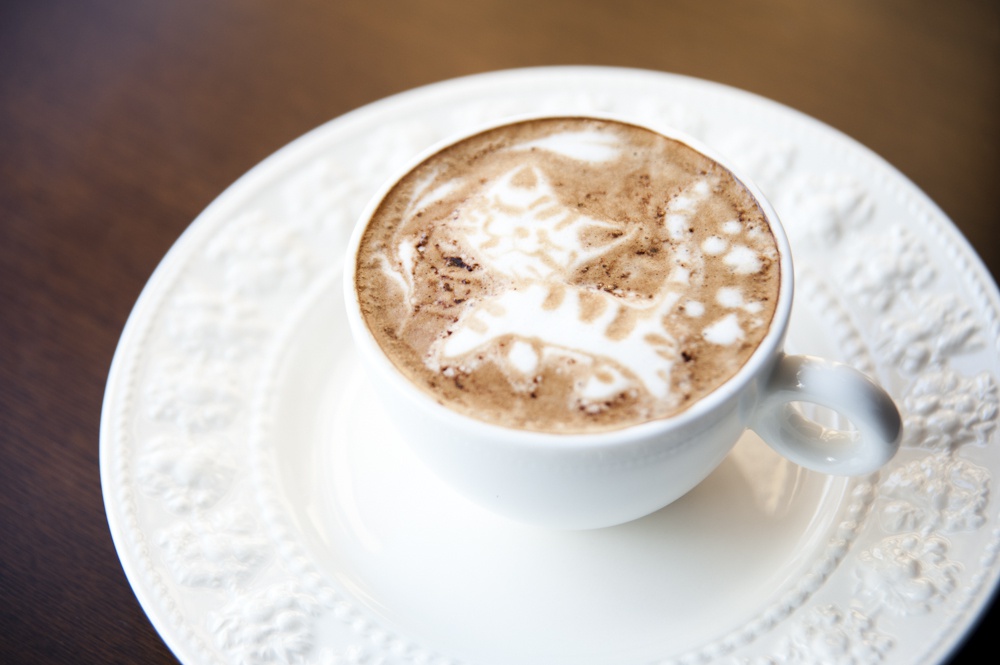 As I took a seat, I noticed a display of photos on the wall showing a variety of cappuccino art designs. Intrigued, I decided to order one myself. “Faces are hard, but I can draw just about anything you want on it. What’ll it be?” said the barista casually.