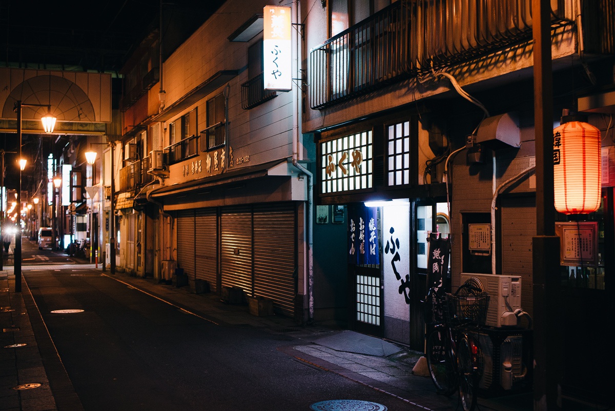 As night draws near, the town which was quiet and relaxed during the day starts to come alive. I started down a narrow backstreet as if pushed by the wind that blows through it, and there I found the bright lit sign of a little restaurant, Fukuya.