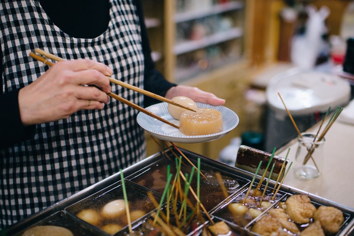 *Oden is a Japanese one-pot dish consisting of ingredients such as boiled eggs, daikon, konjac, and fishcakes stewed in a light broth.