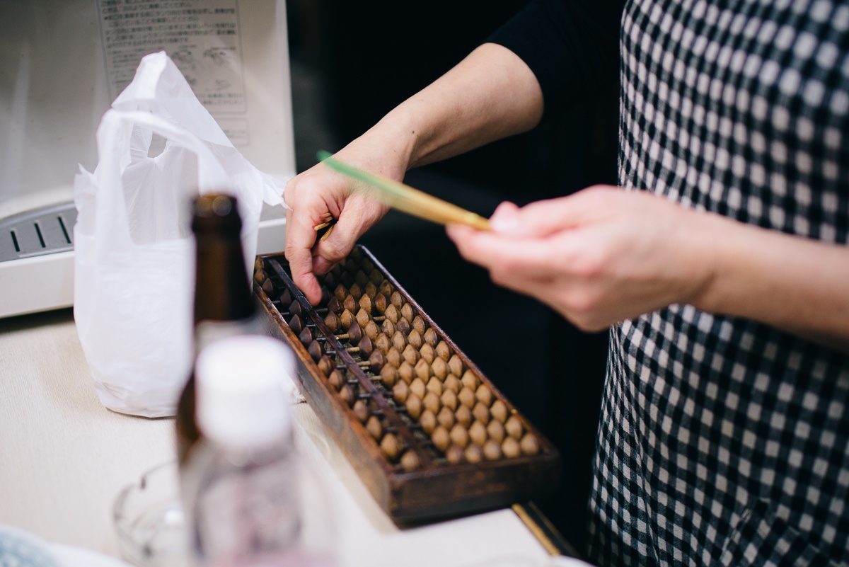 “Thank you for the meal,” I said as I got up to leave. “Thank you!” she called back as she counted up the skewers left from my oden and used an old wooden abacus to calculate the bill. “It’s just addition so it’s really easy,” she said. I was mesmerized as she nimbly operated the abacus.