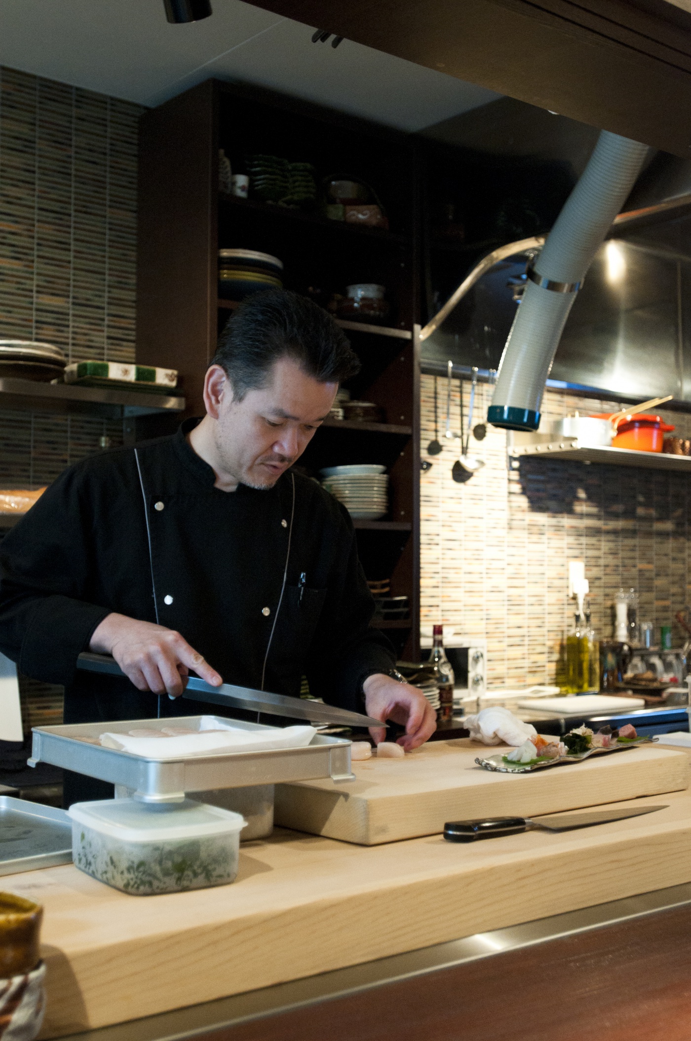 “I had it made so that there is no boundary wall between the counter and the kitchen. I want customers to see the food being cooked — to see everything.” As he spoke he deftly sliced fish, making sashimi with a long sushi knife. I was instantly mesmerized. I commented on the considerable size of his cutting board. “Oh this? This isn’t acutting board. The thing on top of it is a cutting board. This is a leftover piece of Japanese cedar from when I had this counter made,” he replied. I learned that the cedar that forms the counter was an 80-year-old tree that was processed and dried for 20 years. It’s a century-old piece of wood, and one of the most important pieces of this restaurant. “Interaction with customers is important. I wanted to be able to work at a distance at which both mine and the customer’s face is clearly visible.” I finished my food and was on my way, feeling quite impressed by everything the owner said.